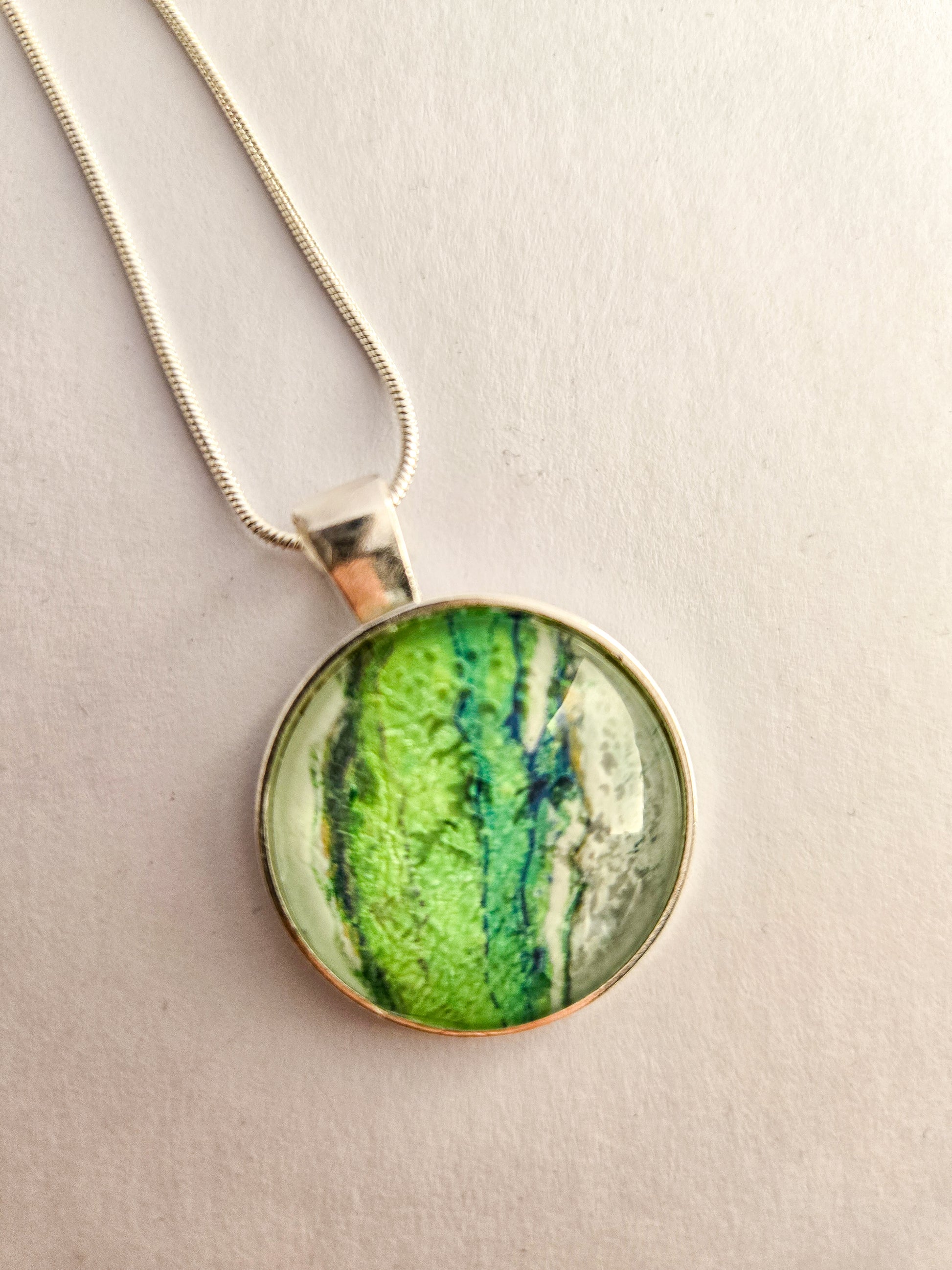 Elevate your style with these one-of-a-kind 18-inch silver-plated necklaces, each featuring a handcrafted acrylic-pour pendant. No two pieces are ever the same—every swirl, cell, and colour flow is created through intuitive paint-pour techniques, turning each pendant into a tiny wearable artwork.